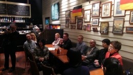 今月は、ドイツ連邦共和国ヴォルフスブルグ市より、穂の国ハーフマラソンに参加されるランナーお二方と随行者の皆さんをお招きして歓迎会となりました。 いつもと違うお店でワイワイやっております。